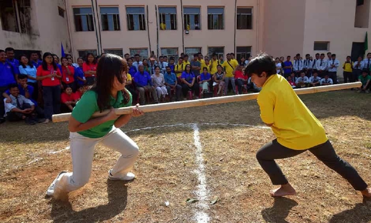Wa’pong Sika, similar to tug-of-war, uses a stout bamboo pole instead of a rope, with teams pushing against each other to cross a marked boundary. Historically, it was played by young men from the Nokpantes (Bachelors’ Dormitories) of the Garo tribe. Meanwhile, An.ding Oka involves a test of strength where competitors pull a bamboo stick towards themselves, with the one maintaining grip declared the winner. Apart from these traditional contests, Varsity Week also includes chess, carrom, throwball, and marathon competitions.